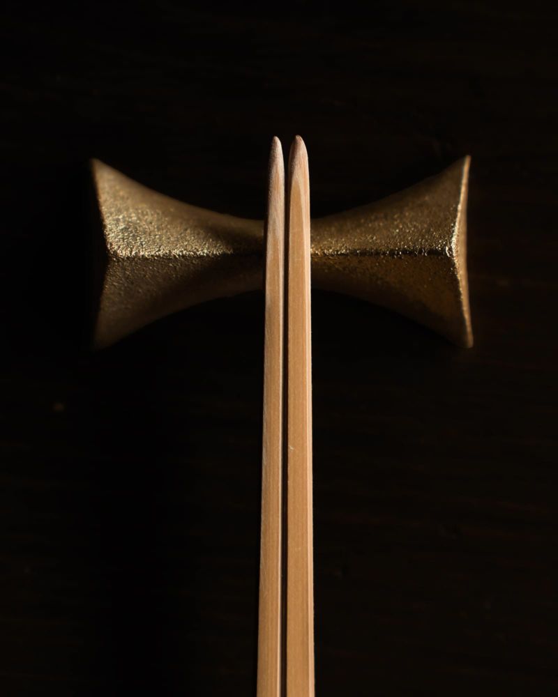 素材の特性を活かし、極限まで細く仕上げられた竹箸。揃えたときに二本がぴったりと合うのが大変気持ちよく、「端正」という表現がこの上なくしっくりくる素晴らしい佇まいです。