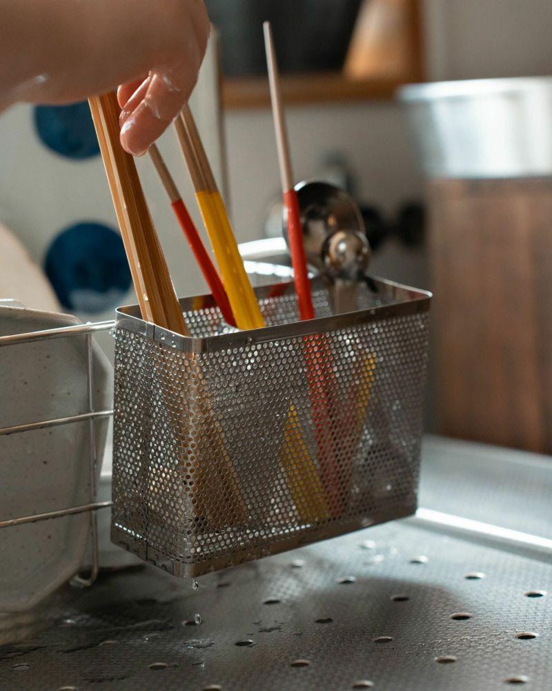 これにより水はしっかりと捌け、カトラリーの向きも一方向に揃います。