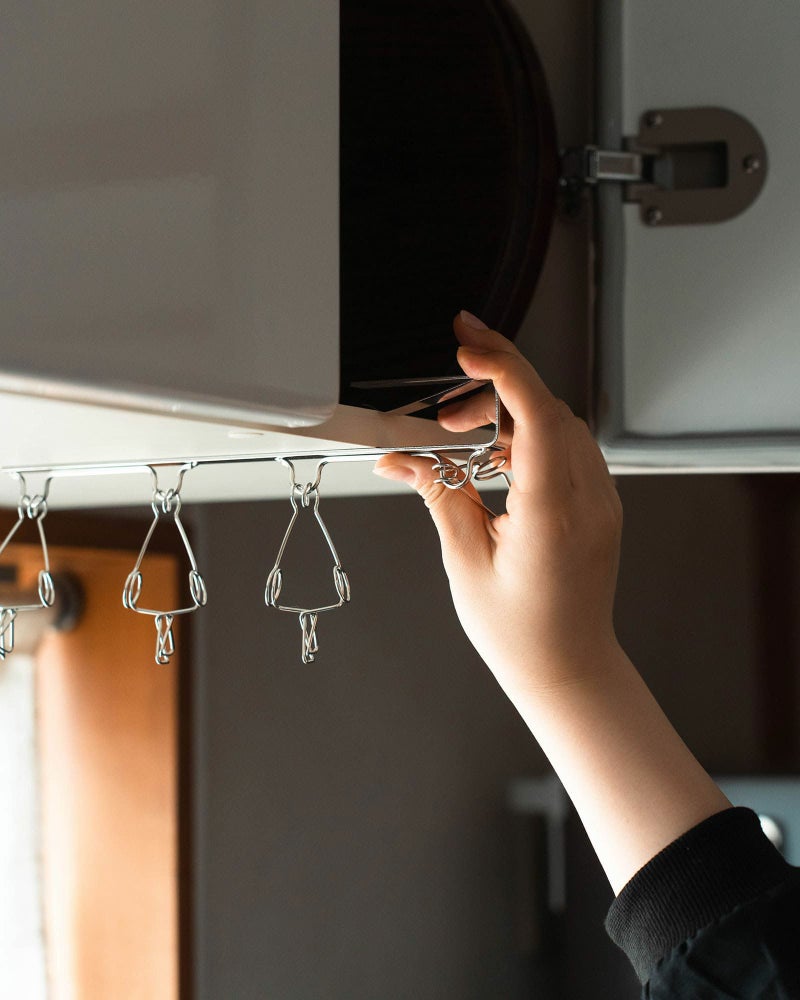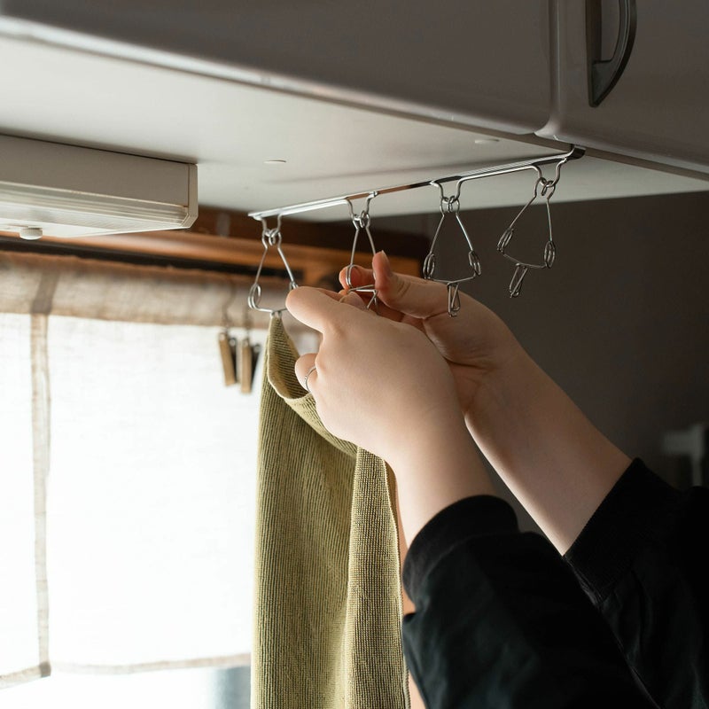 シンク上のデットスペースを、干し場として有効活用できる「吊戸棚ピンチ」。
