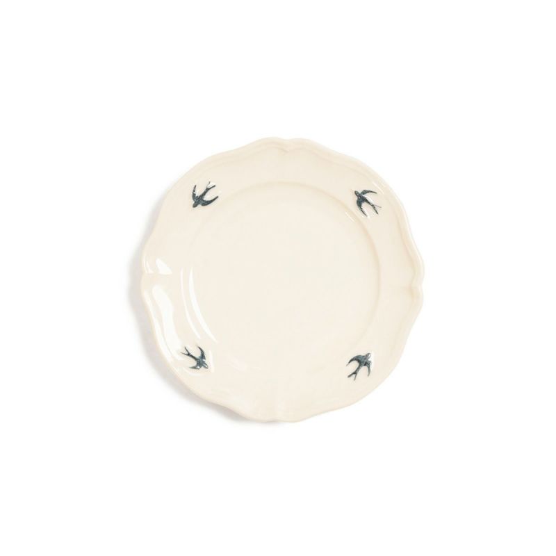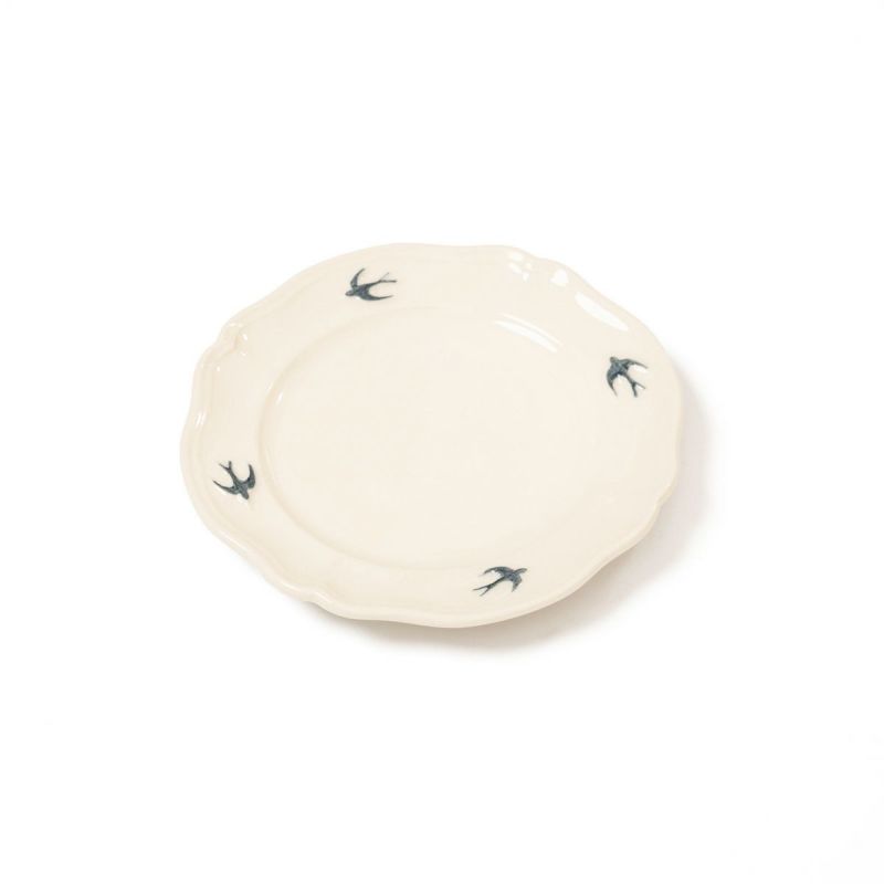 やわらかなアイボリーがかった白磁に、飛び立つツバメのワンポイントが映え、食卓に優雅な雰囲気を添えてくれます。