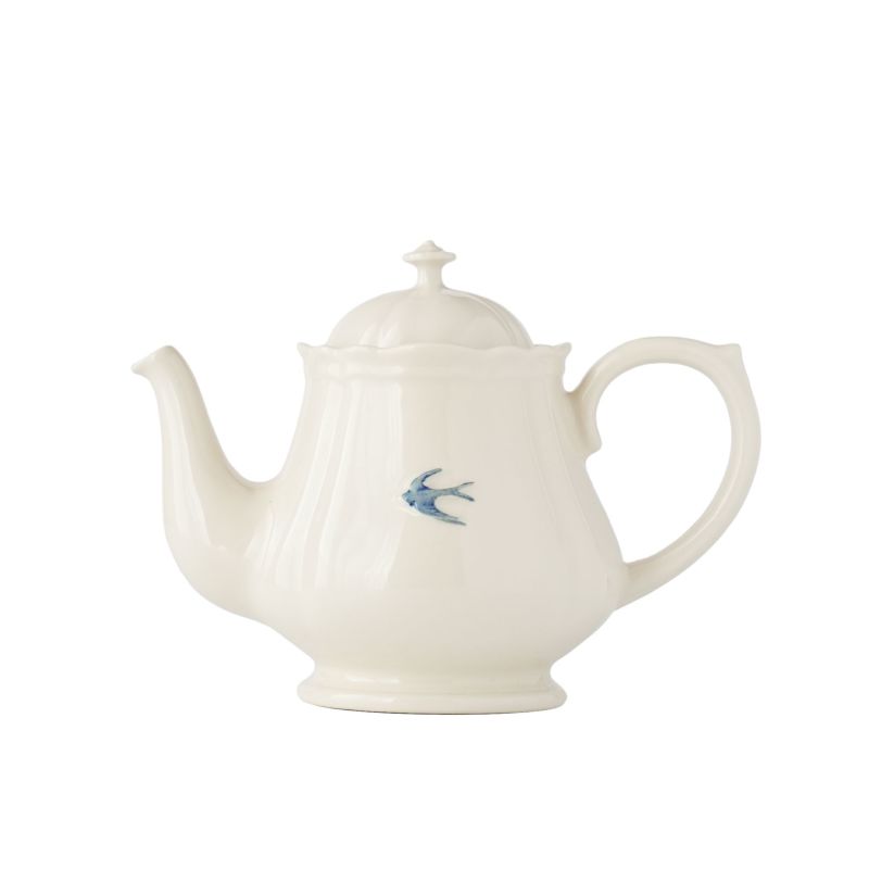 やわらかなアイボリーがかった白磁に、飛び立つツバメのワンポイントが映え、食卓に優雅な雰囲気を添えてくれます。