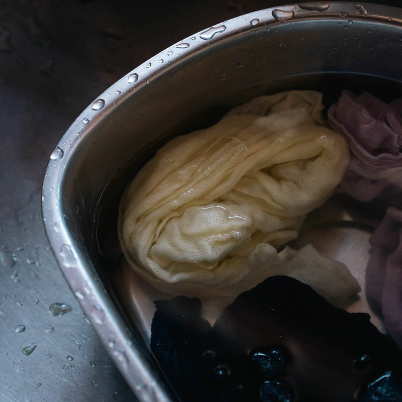 A.お水にお酢と塩を入れ、沸騰させてからふきんをいれて5分ほど煮沸消毒、もしくは酵素系漂白剤で洗ってあげてください。(白百合のみ塩素系漂白剤がお使いいただけます。)