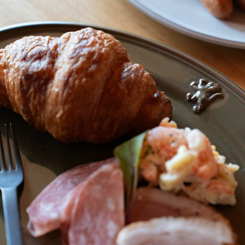 ワンプレート:マルタ 280オーバルプレート(オリーブ) / おかず:マルタ 230オーバルプレート(ブラン) / 果物:マルタ 130オーバルプレート(ブラン) / 珈琲:マルタ マグカップ(オリーブ)