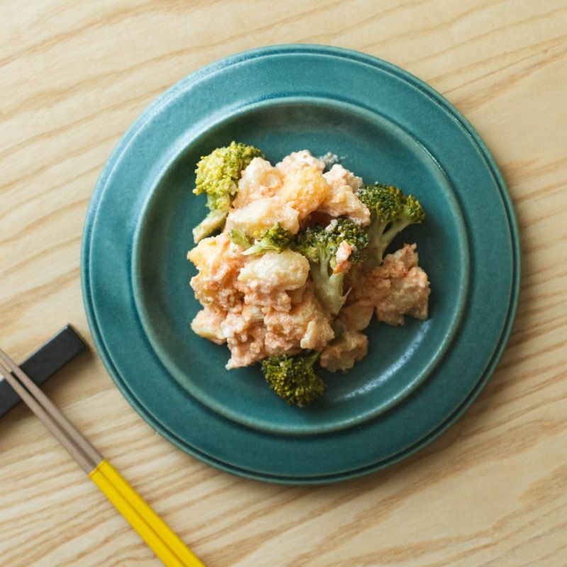 明太ポテトサラダ:オルト 200プレート(トルコグリーン) /箸:season1 箸(マスタード)