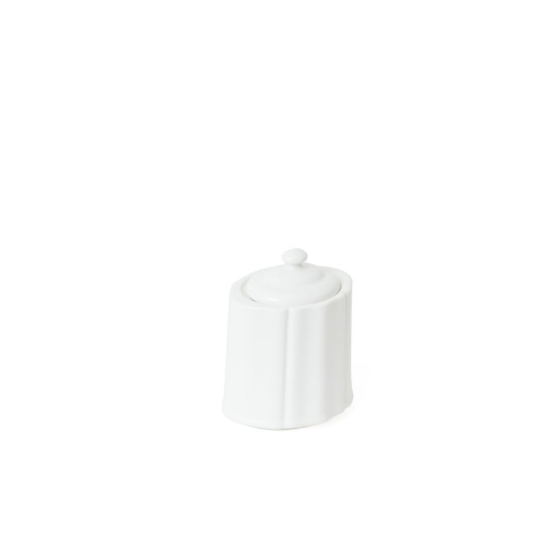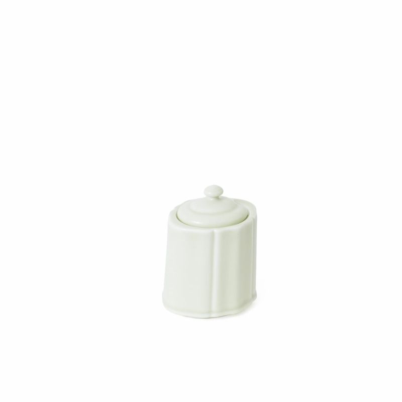 ポットをきゅっと小さくしたようなシュガーは、蓋をしまままカトラリーを入れることのできる穴があります。