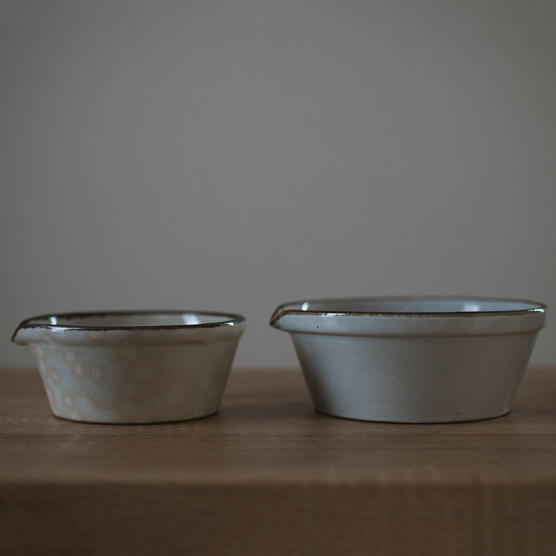 陶器なので釉薬の色ムラ・ピンホール・鉄粉などといった特徴がありますが、白は特に色ムラ・釉薬の化粧垂れ・御本手が目立ちます。届いた個体を愛せる方に選んでいただけると嬉しいです。