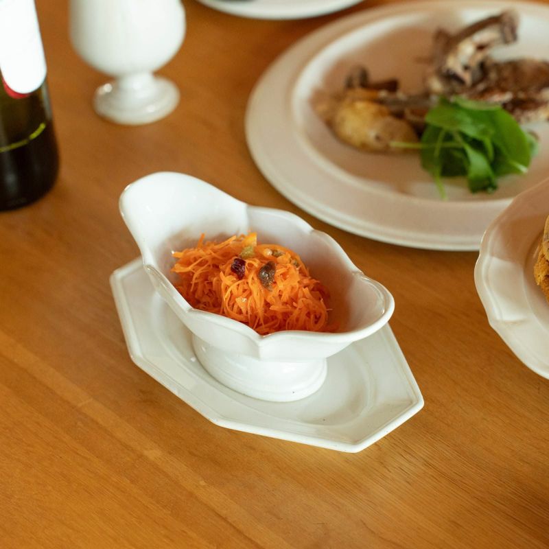 ソーシエール(ソース入れ)がデザインのベースにあり、本来ならプレートと一体型のところを今の日本の食卓に合うよう別々でも使えるように設計されました。