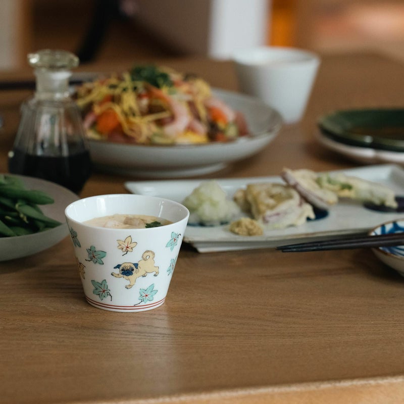 本来であれば躍動感あふれる鹿が器全体を全体をクールに締めていますが、パグになるだけで、こんなにも楽しそうかつ全体がかわいく思えるのですから不思議ですよね。