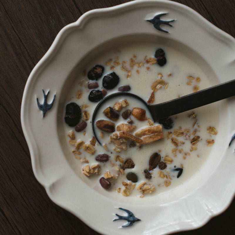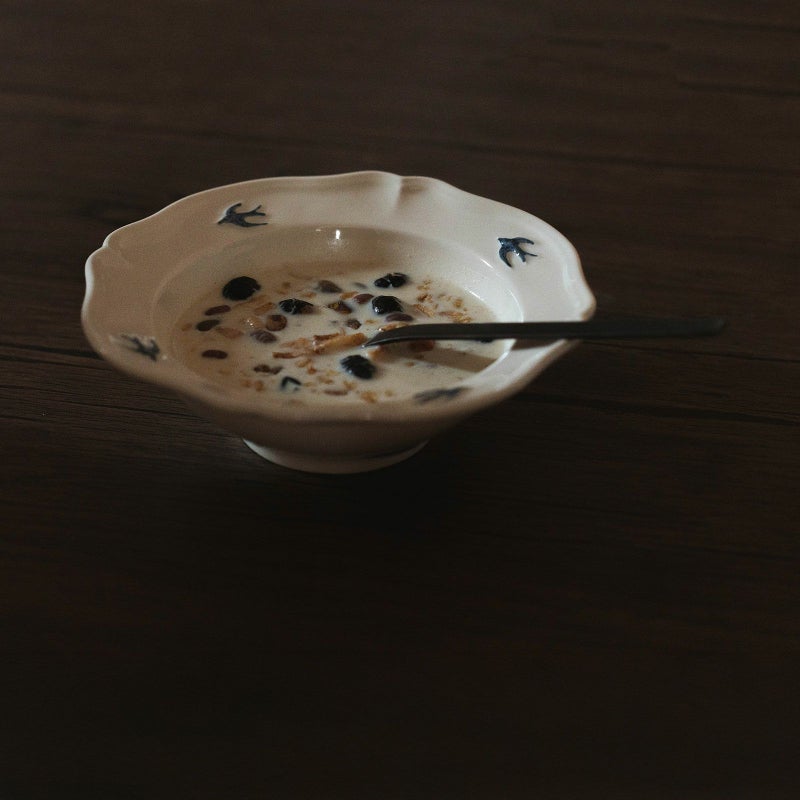 やわらかなアイボリーがかった白磁に、飛び立つツバメのワンポイントが映え、食卓に優雅な雰囲気を添えてくれます。