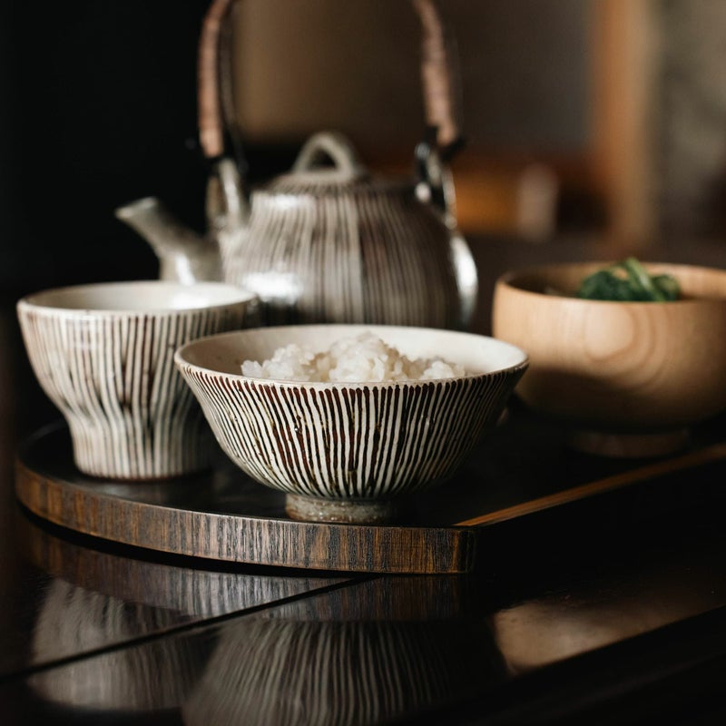 通常であれば「不純物」として取り除かれるはずのものを、意図的に残すことで、表面に浮かび上がる黒点(鉄粉)や、釉薬の下から透けるざらりとした質感を表現。