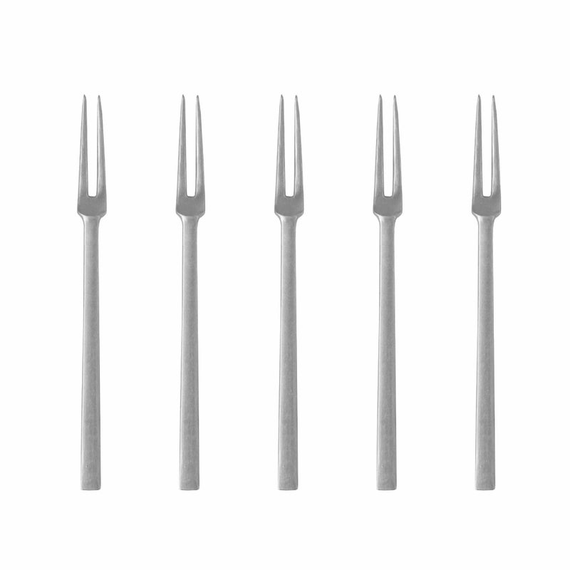 日本には、客人に菓子を供する際に使う「菓子切」という道具が古くからありました。和菓子を一口大に切り分けたり、手を汚さず口に運ぶためのものです。その佇まいはどこか控えめで、けれど食の所作を整える大切な役割を担ってきました。姫フォークにも、そんな菓子切の精神を思わせるところがあります。華美に飾らず、けれどひとつ添えるだけで食卓に凛とした空気が生まれるのです。