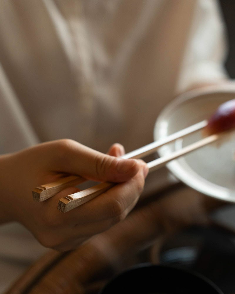 竹の表面と食材との間に生じる適度な摩擦によって掴み心地も非常に良好。角を立たせた仕上げですが指への当たりは不思議と柔らかく、軽さと相まってとても使いやすい一膳になっています。