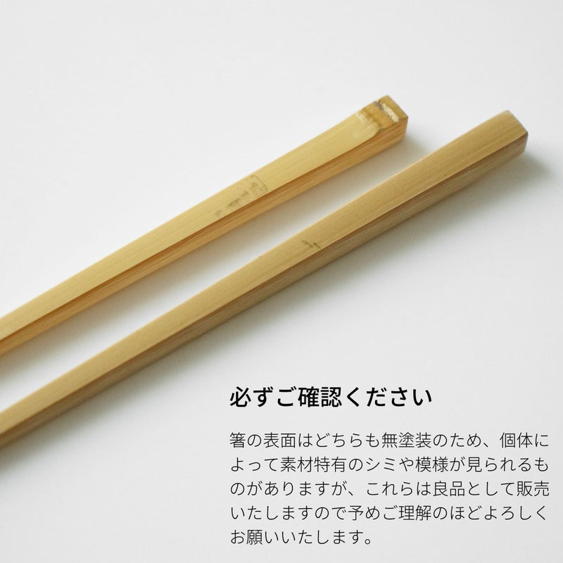 箸の表面はどちらも無塗装のため、個体によって素材特有のシミや模様が見られるものがありますが、これらは良品として販売いたしますので予めご理解のほどよろしくお願いいたします。
