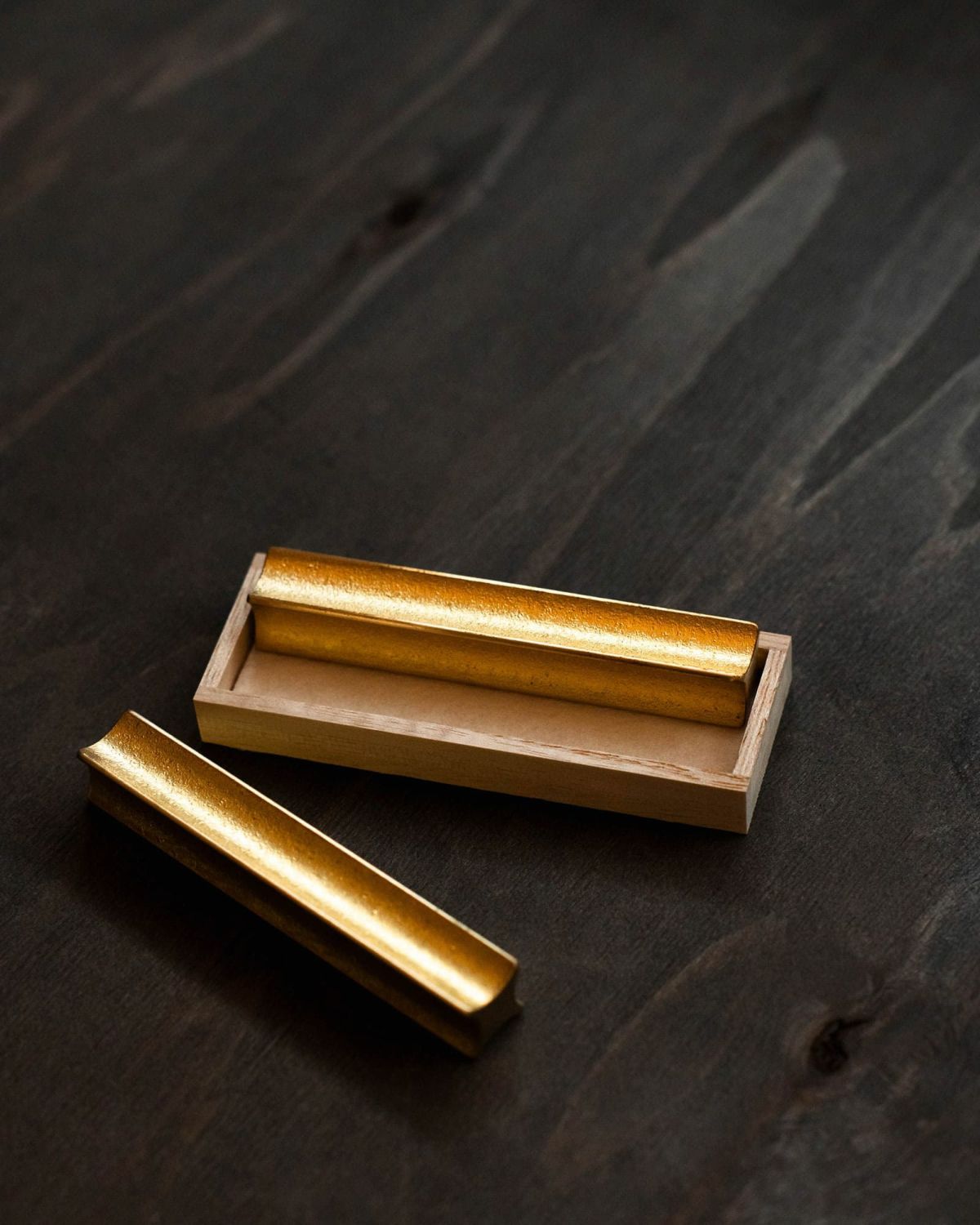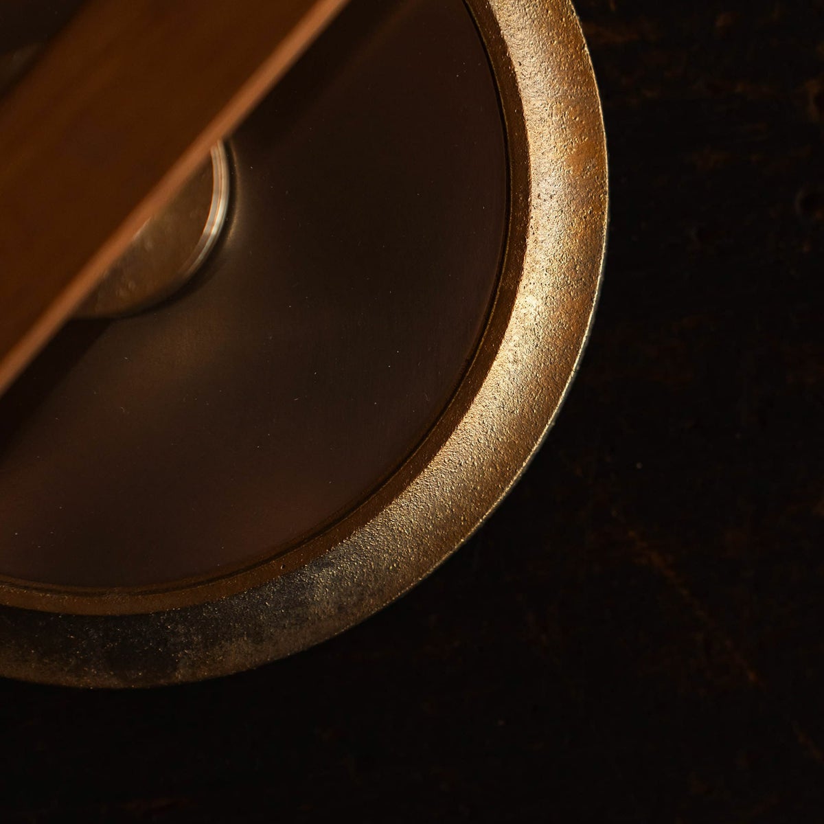 使いはじめは鈍くやわらかな金色。時間とともに深みのある色艶が生まれ、手のあとが刻まれていく――。