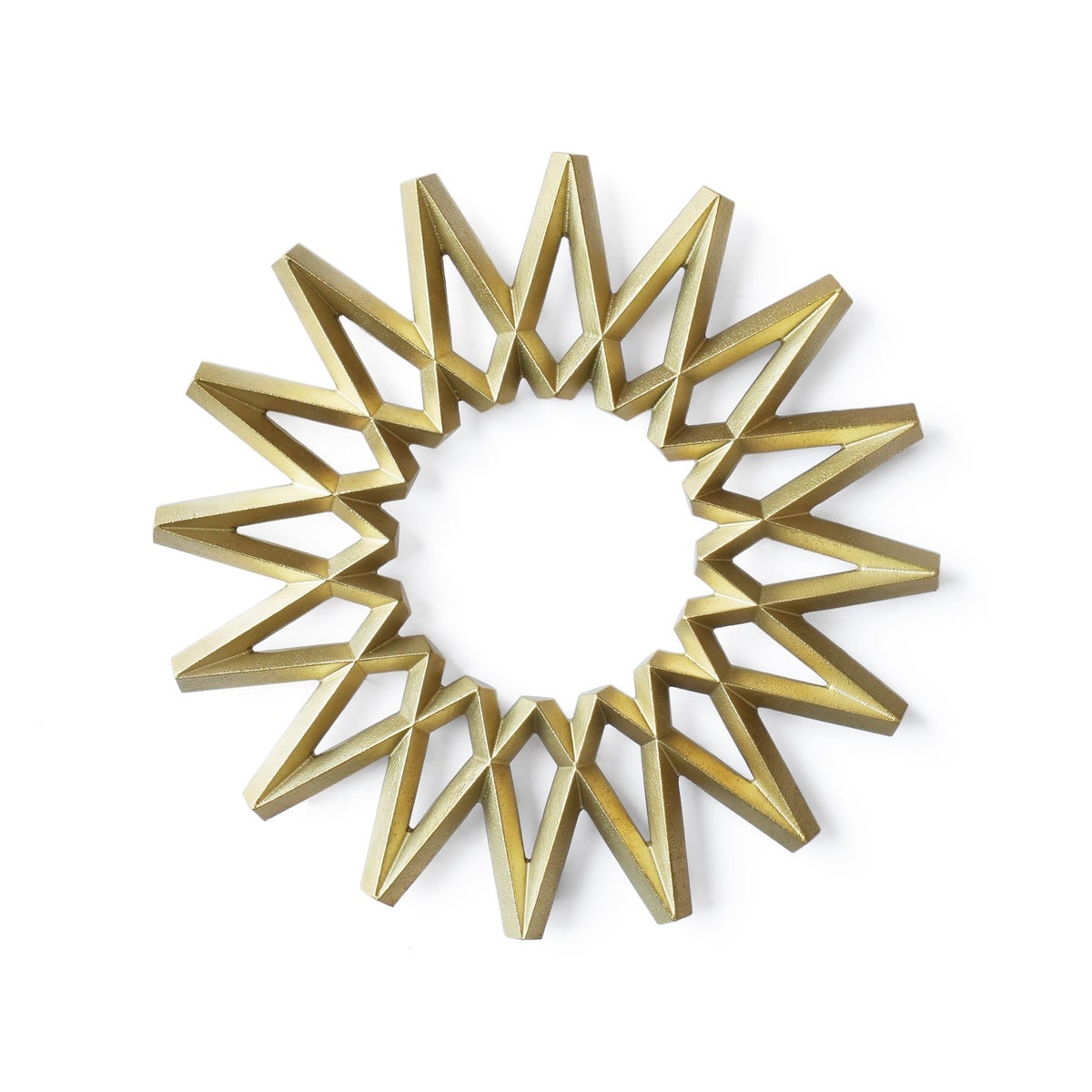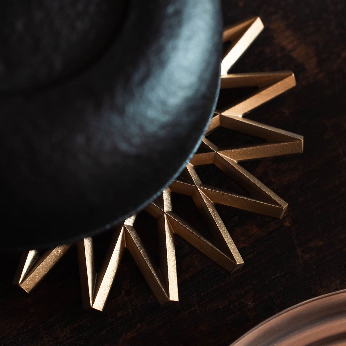 「天体」をモチーフに、鋳肌の質感を活かして形作られたFUTAGAMIの鍋敷き。