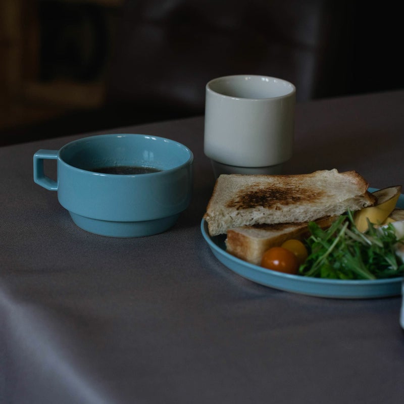 重ねて収納できるスタック性能、生地が厚めに形成されていることによって密度が高く頑丈なボディ、口当たりのやさしいエッジ、そして洗いやすさを考えたカップ内側の丸い仕上げ。