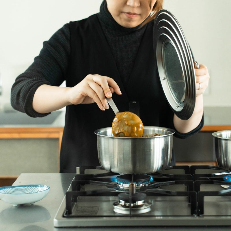 外周には2cm間隔で溝が施されており、サイズごとにぴたりとフィットするため、鍋やフライパンごとに蓋を揃える必要がありません。