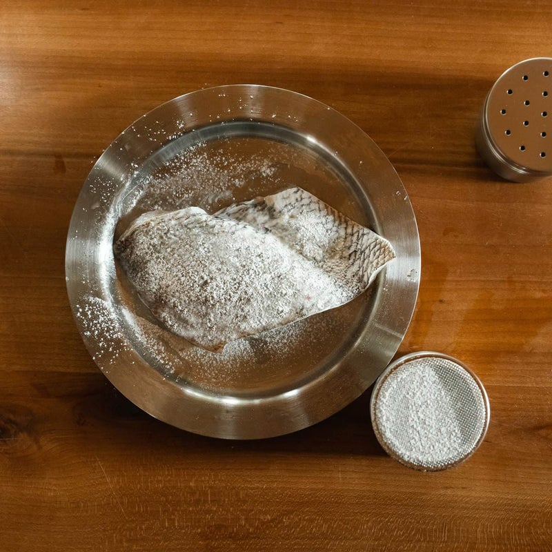 粉もの缶は細かいメッシュ網がかぶさっており、粉が均一に、細かくふるってかけられます。