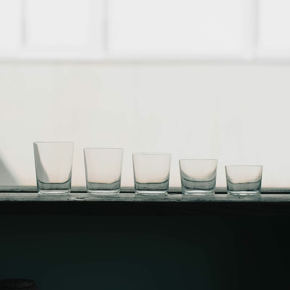 極限まで薄く仕上げられたグラスは、口当たりの良さに驚くほど。シンプルでありながら、そこにあるだけで美しい佇まいが魅力です。