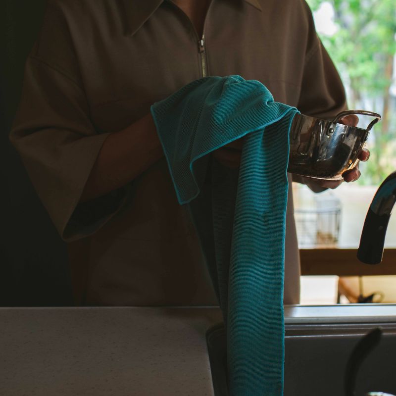 というのもこの細長いサイズがとにかく拭きやすいからです。大きいお皿や土鍋もタオル越しにしっかりと握れるため安心感があります。