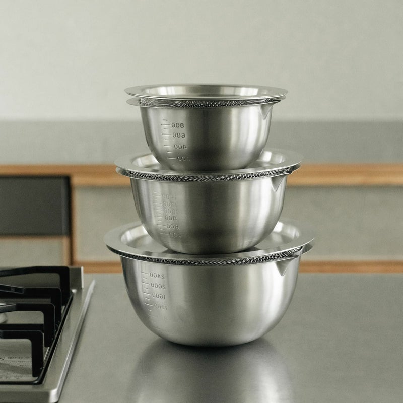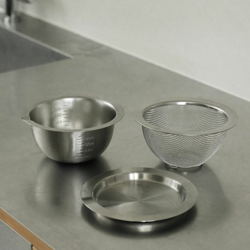 ボウル・メッシュボウル・トレーの3点揃うとどっしりとした重みがありますが、むしろその重厚が”良い道具”であることの証のように感じます。