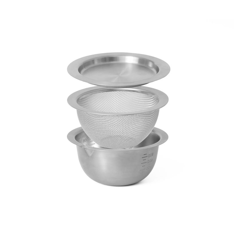 ボウルとメッシュボウルはそれぞれトレーとはしっかり密着するため、ボウルにトレーを被せればラップいらずでそのまま冷蔵庫へ。