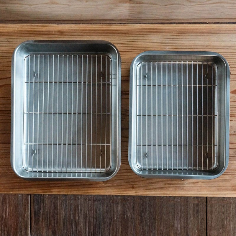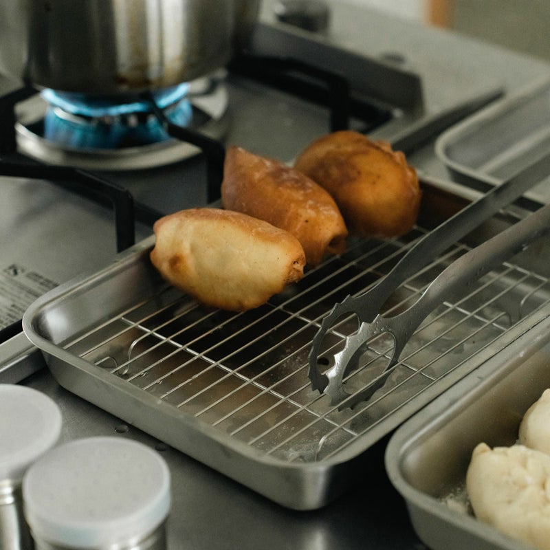 バットは0.6mmから0.7mm、アミは17mm(30枚取のみ11mm)ほどしっかりと厚みのある耐熱ステンレスなので、油から出したてのあつあつの揚げ物を乗せても大丈夫。