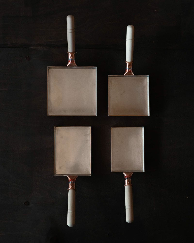 この錫の層が、銅の熱をほんの少し和らげてくれるおかげで、鍋全体がじんわりとあたたまり、玉子にもふっくらと均一に火が入ります。