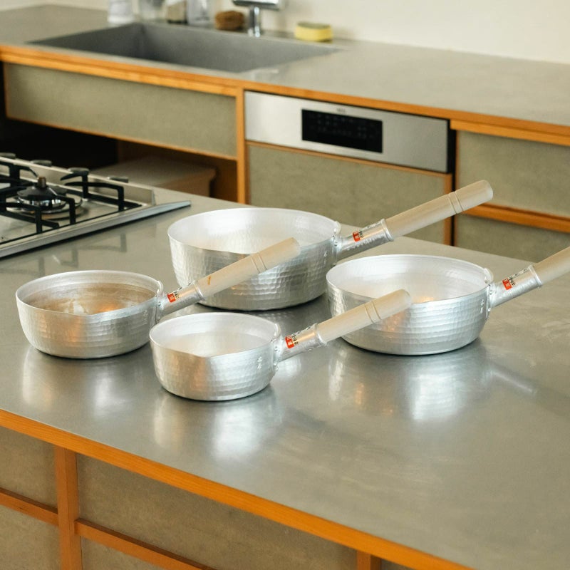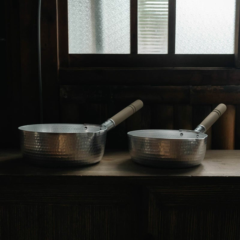 「ゆき平鍋」という商品名で安価で販売されているものは多くありますが、電動ハンマーによる凹凸模様をつけたものが多く、機能性ではなく単に見た目のために施されたものがほとんど。
