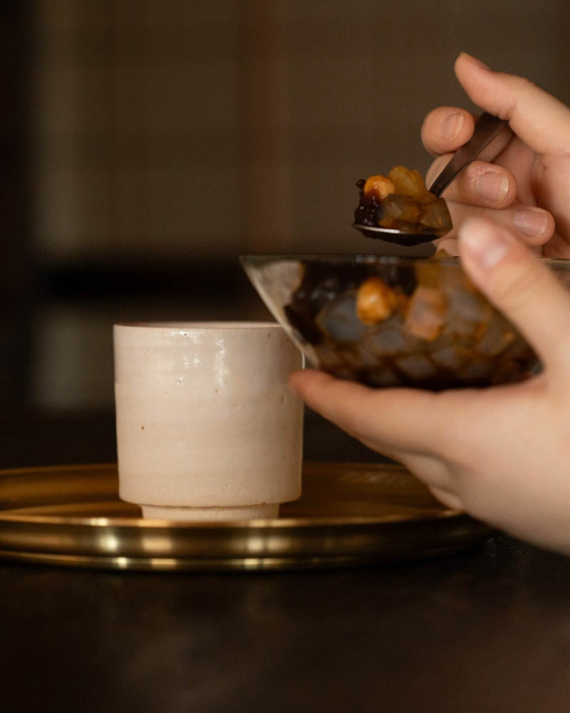また、土の粒子が粗めであるため、熱が手に伝わりにくい一方で、注いだ飲みものの温度はゆっくりと下がっていきます。使い心地も大変に良好なのです。