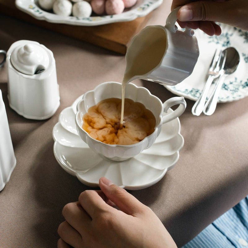 紅茶:ルブケ カップ&ソーサー (ホワイト) / クリーマ:パンジェンシー クリーマ(ホワイト)