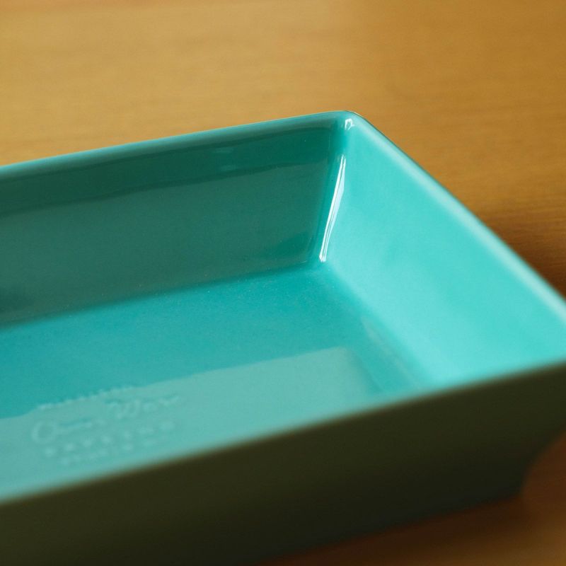 オーブンウェアにしては珍しい長方形ですが、トースターやオーブンに入れやすく、食器棚への収まりもいいのです。