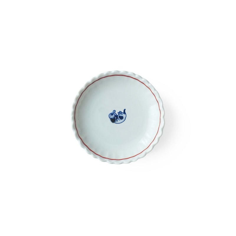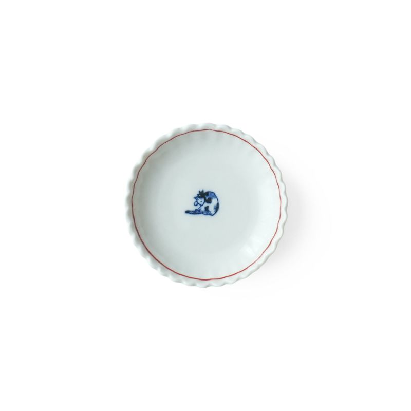 皿のかたちは、菊の花びらを模した波のような縁取り。