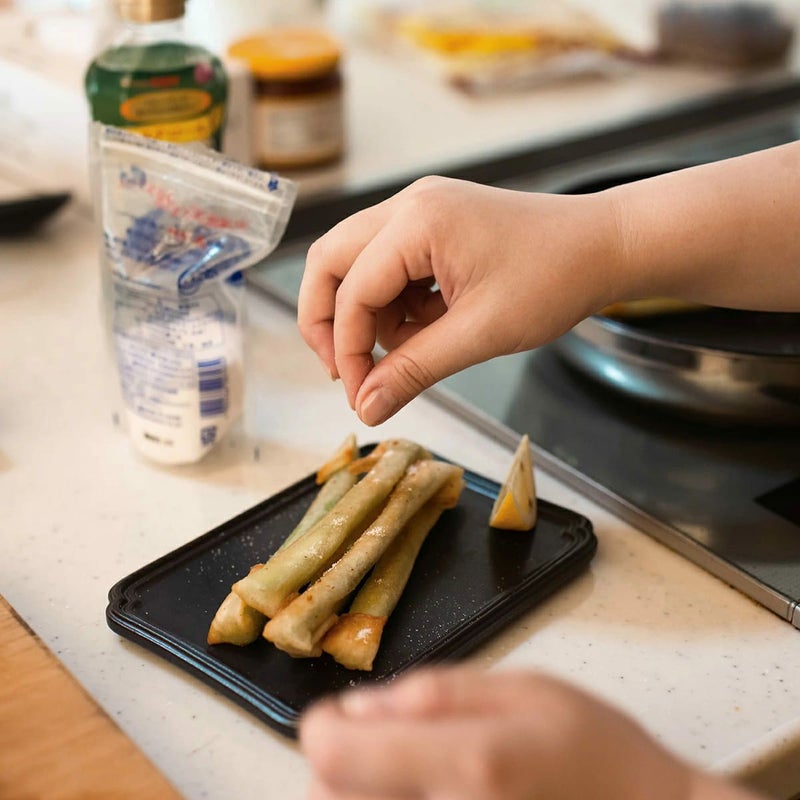 食卓に並ぶお皿のアクセントになる・横に長いおかずを単体で置ける、が一般的な横長プレートのメリット。しかし、アソルティにおいては小さい食品を並べるとよりかわいく見える、が良いところだと思っています。