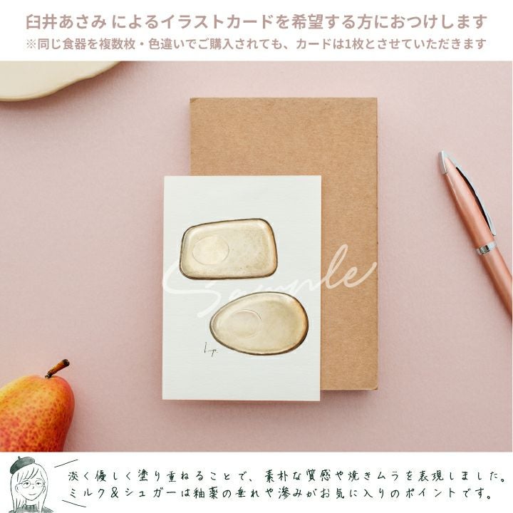 どちらも「たたら成形」という、糸で粘土を切り出す方法で作られているので、表面には生地に含まれた小石が引っ張られた線があったりします。また、手作業で形を切り出すため形やリムの立ち上がりも一枚一枚異なります。