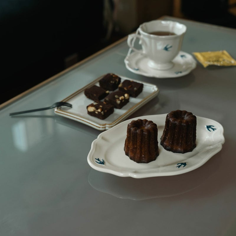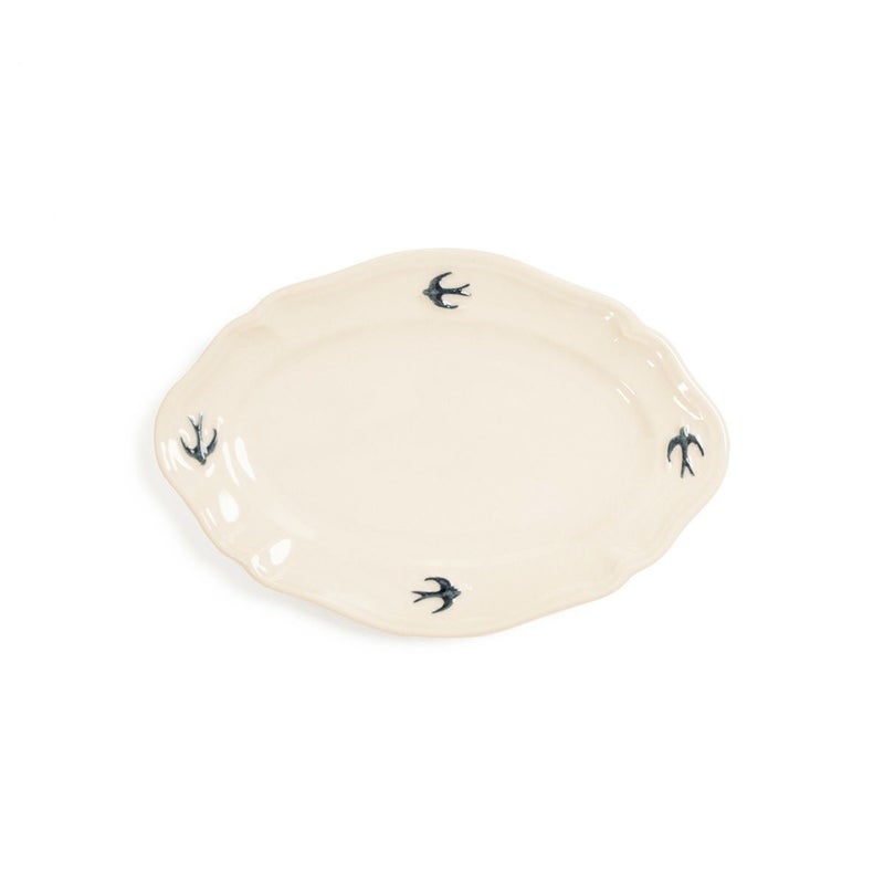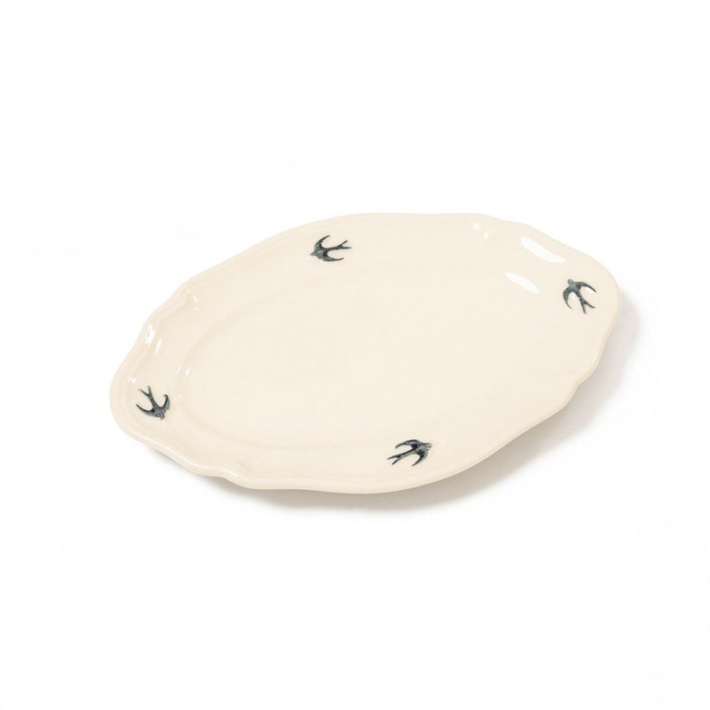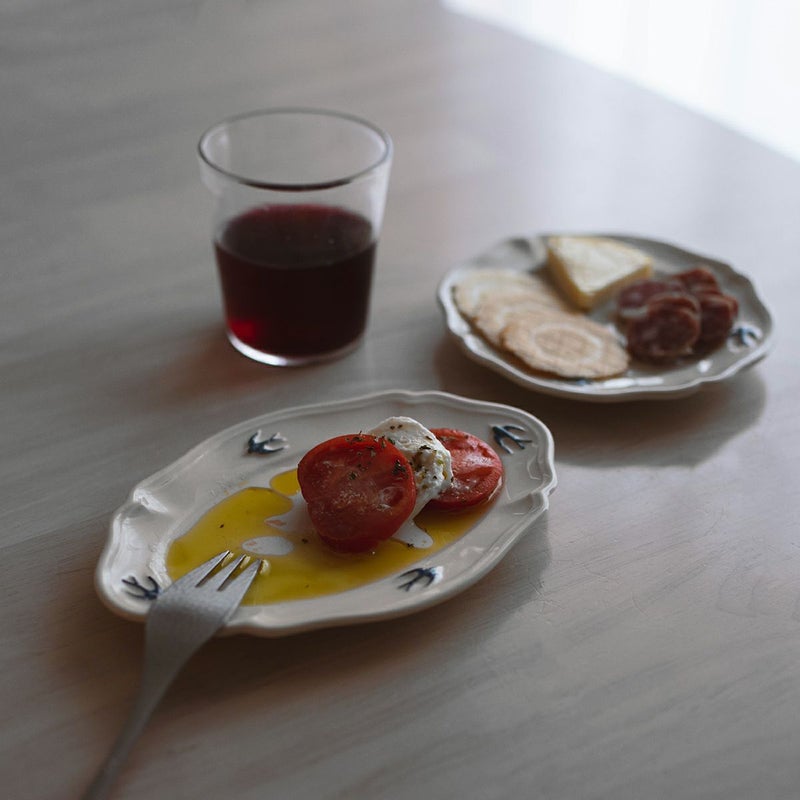 やわらかなアイボリーがかった白磁に、飛び立つツバメのワンポイントが映え、食卓に優雅な雰囲気を添えてくれます。