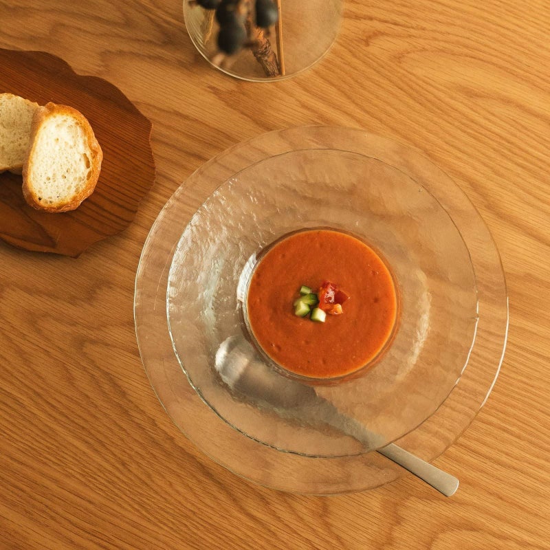 また、器越しに食卓の色が透けることで、全体の雰囲気が自然と調和するため、陶器や木製の器と合わせても浮きません。