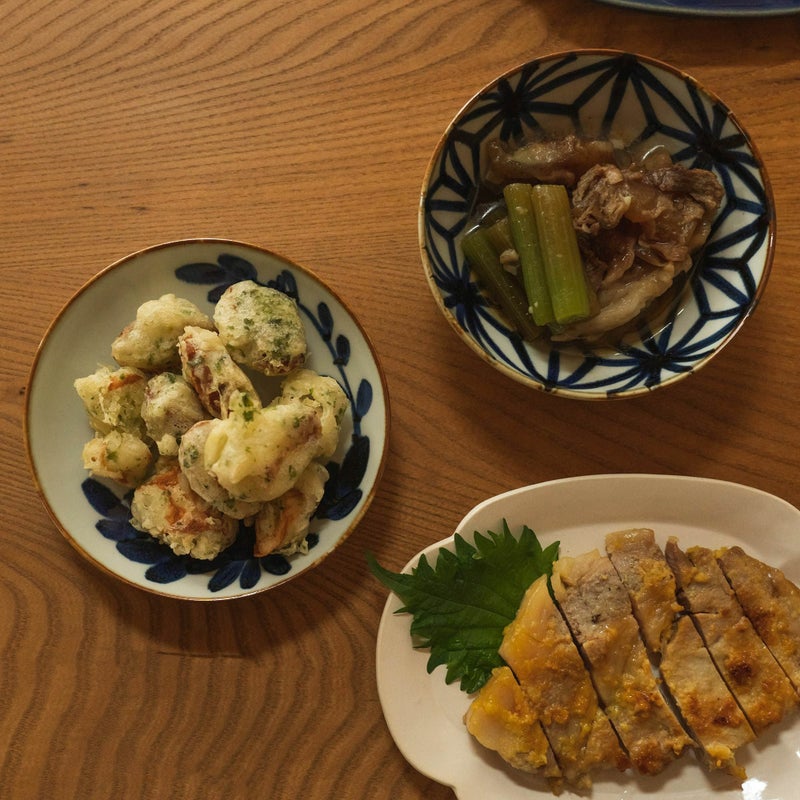 藍色とほどよい白さの素地を、やさしさはそのままにぐっと引き締めてくれます。