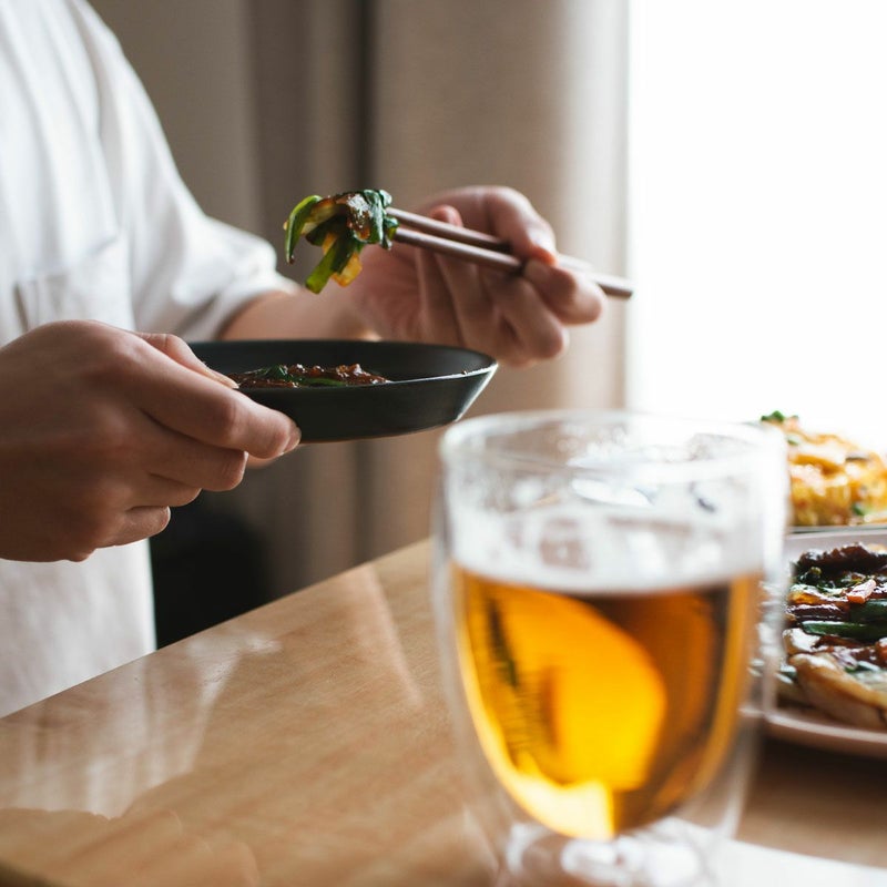 焼きそば:レカ 220プレート(白) / お箸:(大豆色)