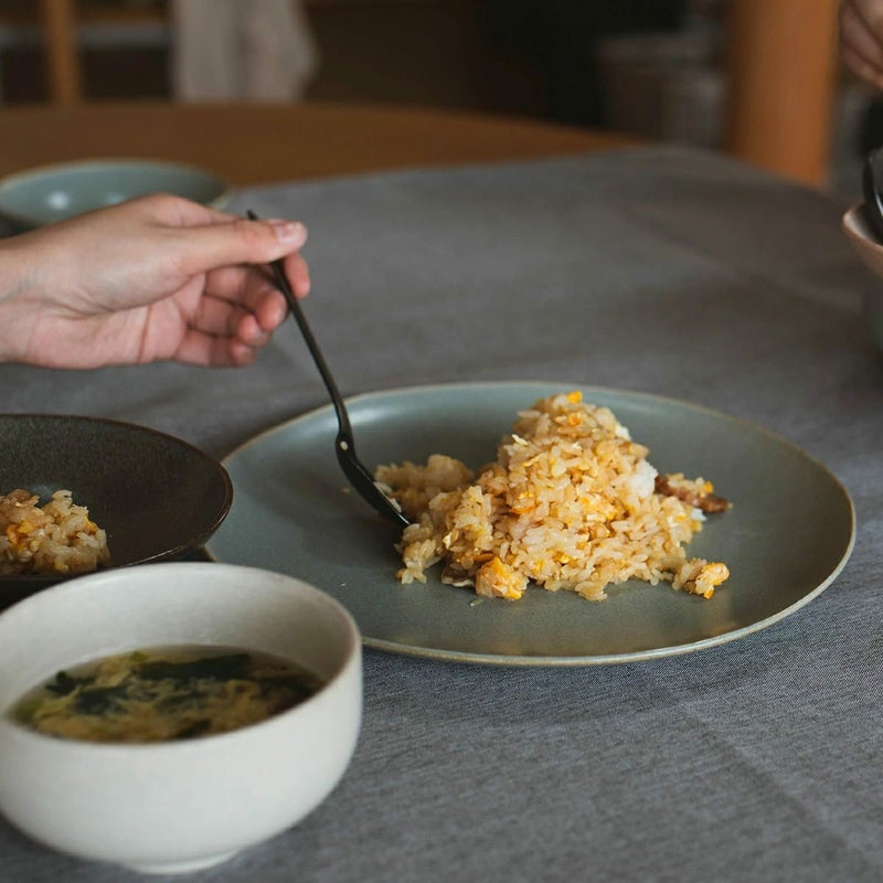 ご馳走専用のサイズかと思いきや、意外や意外、シンプルな炒飯をのせてもいい感じに余白が生き、特別感を醸し出してくれます。ここまでちゃんとお皿の存在感があるとあとは汁物だけでいいかなという気持ちに。