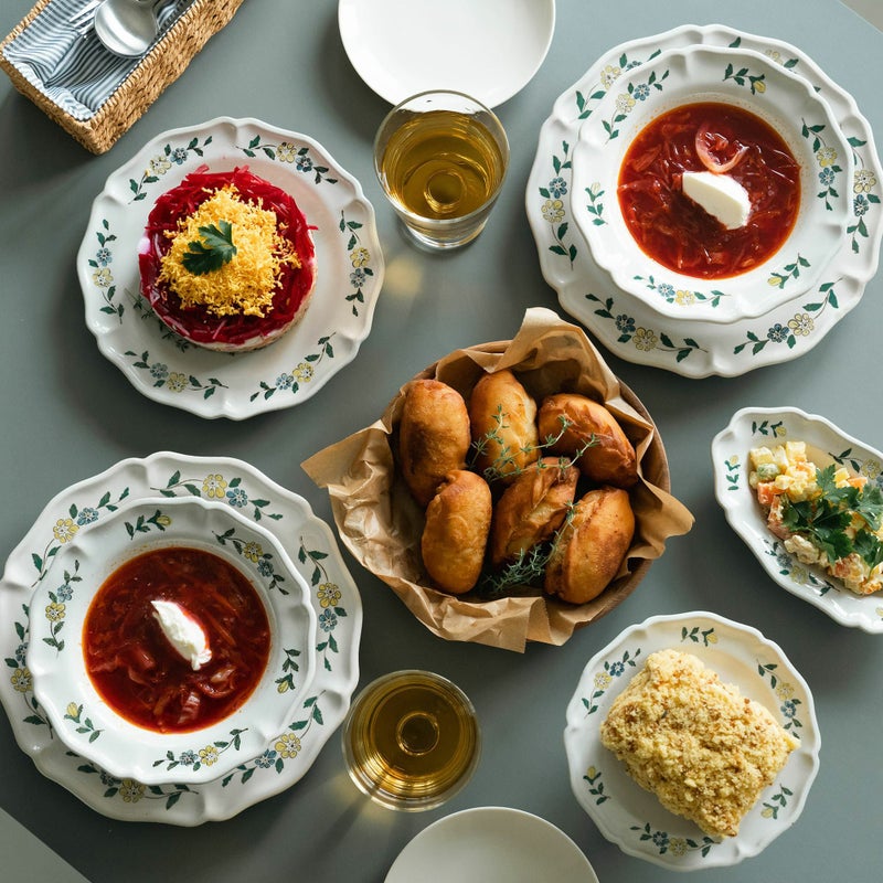 ボルシチ:ラヴィゴット 180ボウル / ソーサー:ラヴィゴット 240プレート / ピロシキ・グラス・カトラリー:スタッフ私物
