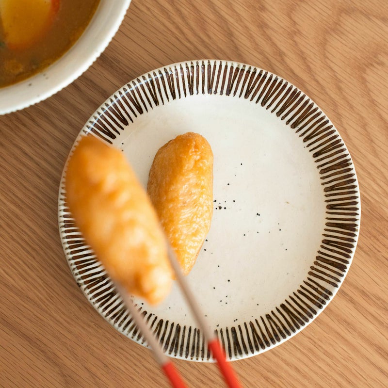 使い続けるうちに、表面の釉薬にはうっすらと貫入(細かなヒビ模様)が現れ、そこに料理の色や油分がじわりと染み込んでいきます。
