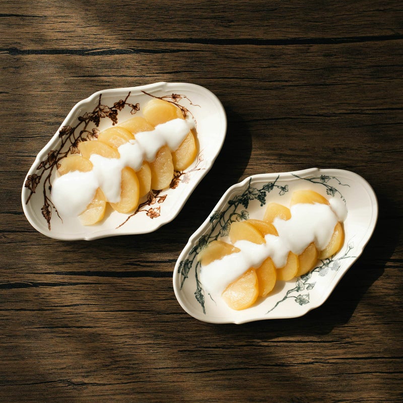 プレートはどちらもリムが大きめに作られているため、料理を盛り付けると自然と余白が生まれ、トーストや卵、果物をちょっと乗せるだけで様になるものいいところ。