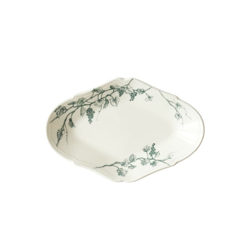 ヴィーニュに描かれた美しい葡萄の枝や果実、そして伸びやかな蔦は、ヨーロッパのアンティーク絵皿を思わせるデザイン。