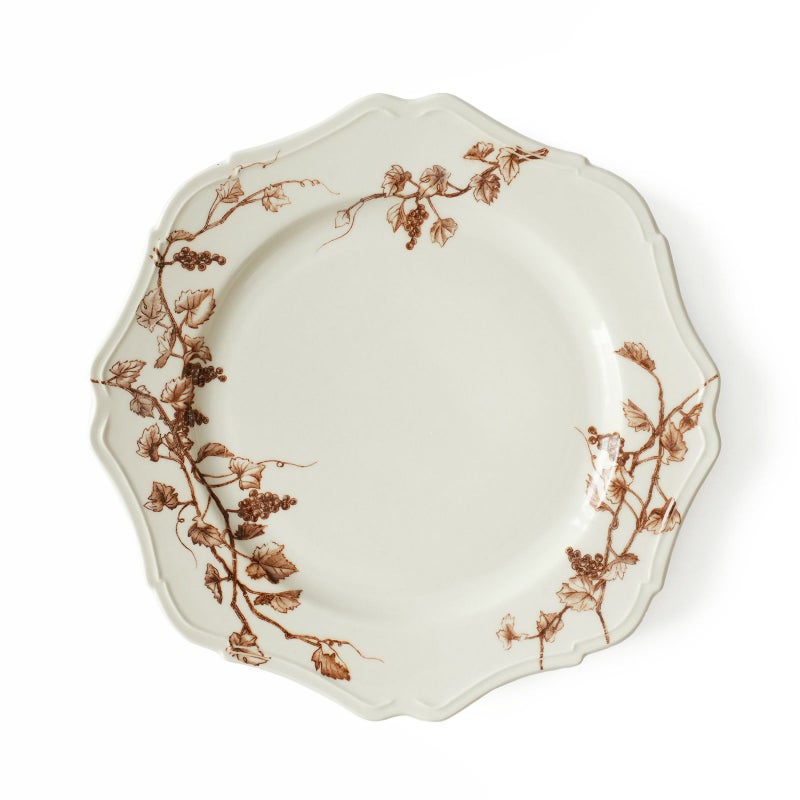 ヴィーニュに描かれた美しい葡萄の枝や果実、そして伸びやかな蔦は、ヨーロッパのアンティーク絵皿を思わせるデザイン。