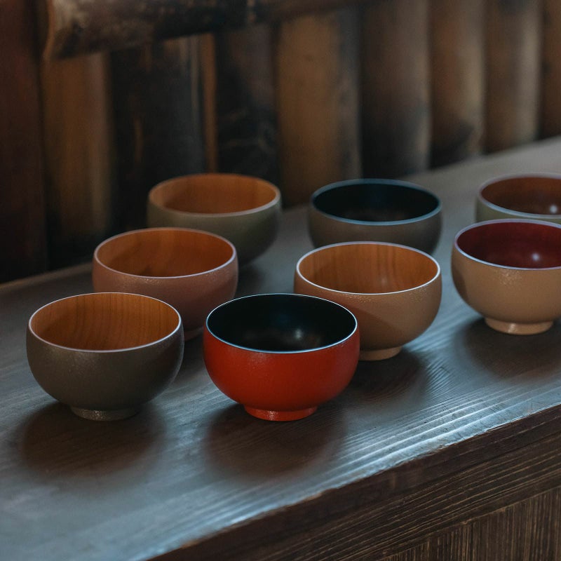 一方、木目が黒と赤に塗られているお椀たちは、和のイメージは残したまま 堅苦しすぎない雰囲気が。