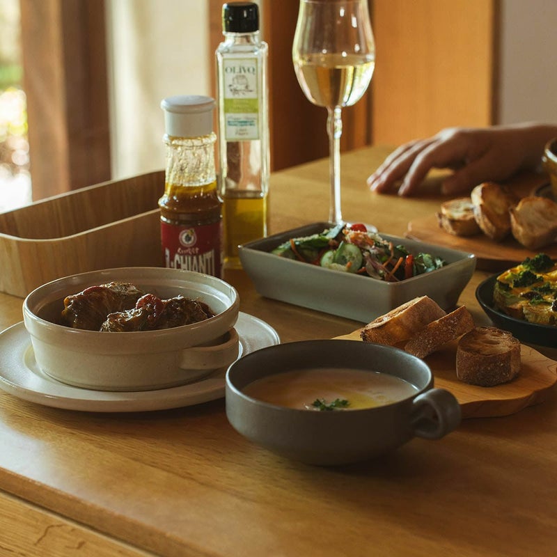 ココットよりも上から見える面積が大きいぶん、メイン料理として目立たせるにはぴったりなので、ごろごろ肉のシチューやロールキャベツなどがよく映えます。
