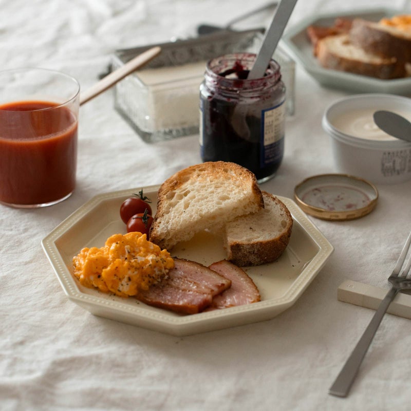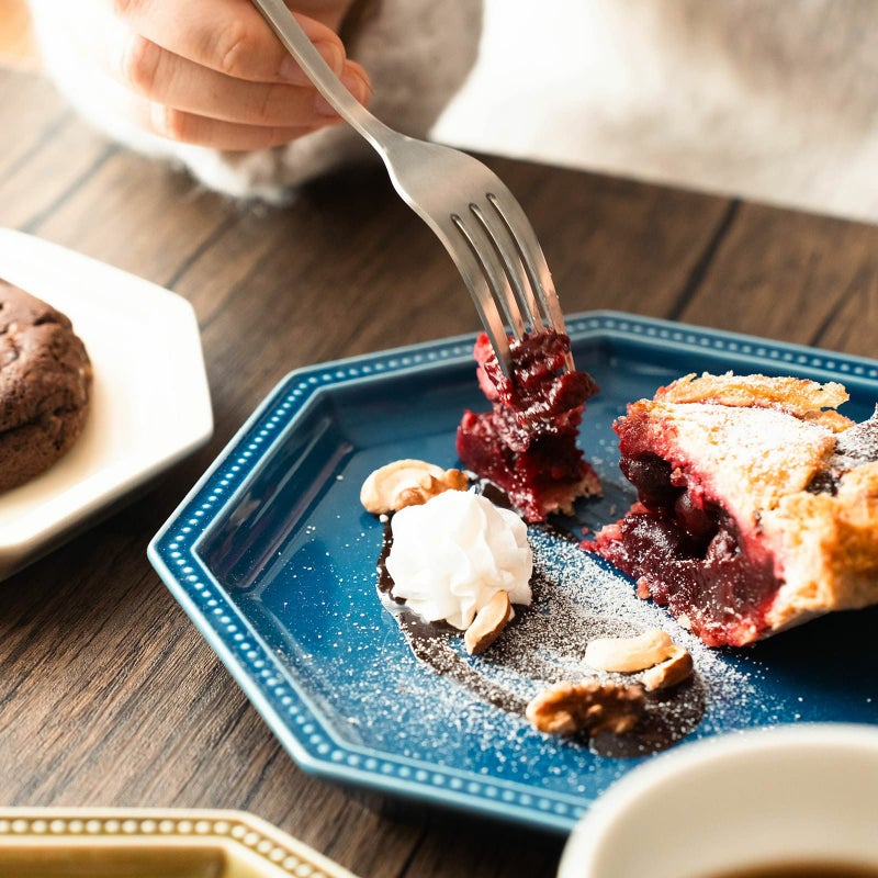 特徴的な八角形の形状(オクトゴナル)に、リムに並ぶドットは、今では色々な食器屋さんで見かけるようになりましたが、少し前だとかなり目を惹く存在だったような気がします。