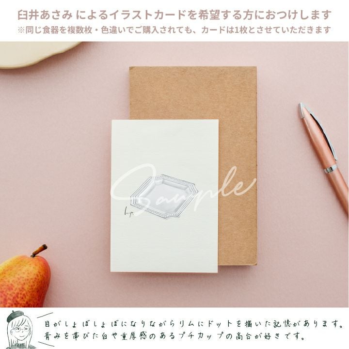 リム(縁)のドットが非常にチャーミングですが、四隅のくぼみがあることでかわいすぎず、上品にまとまっています。