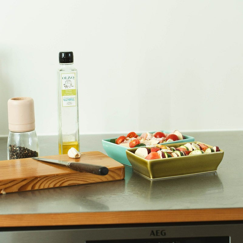 重ねて収納できるオーブン対応皿、ベイキングディッシュ。